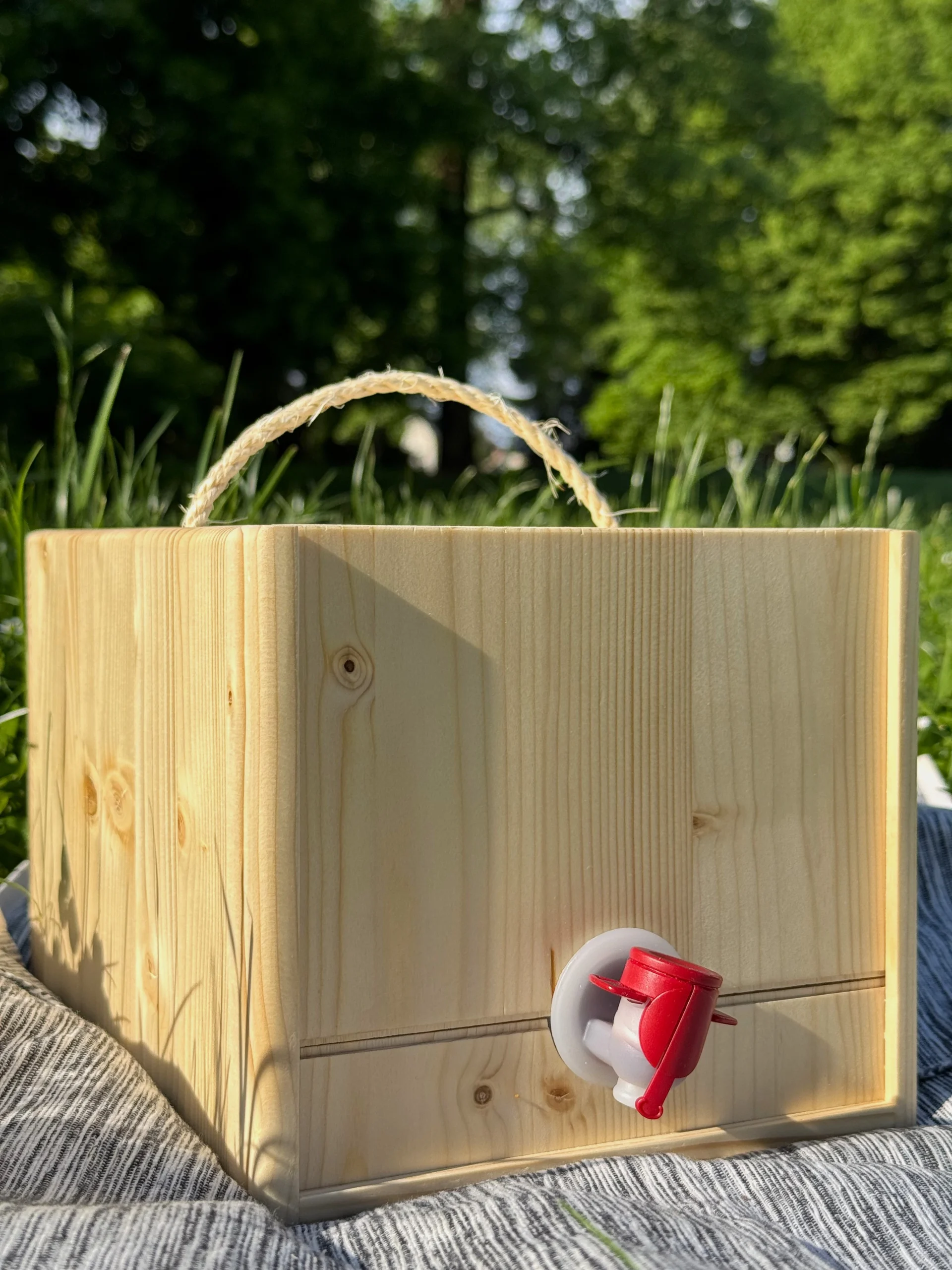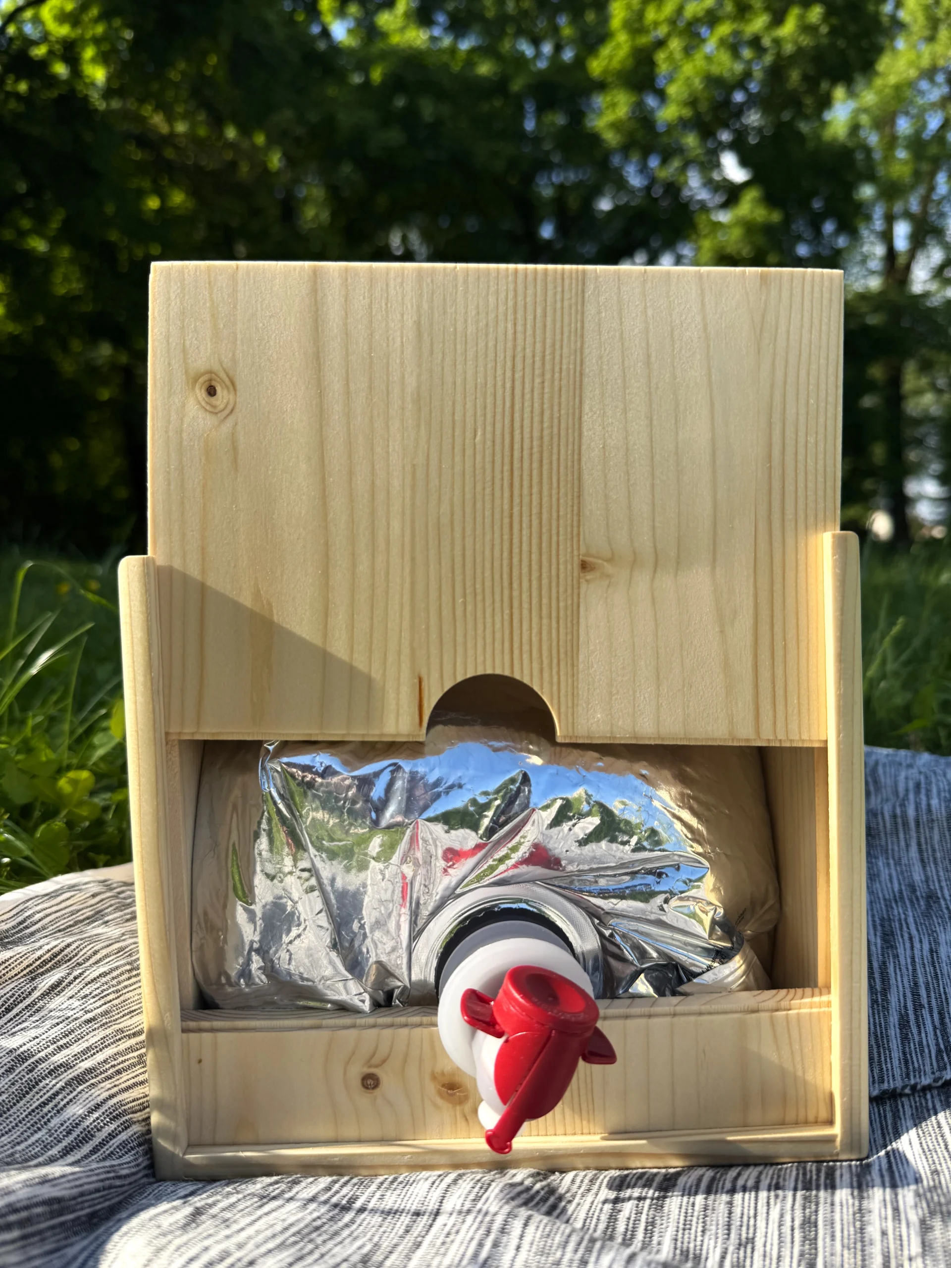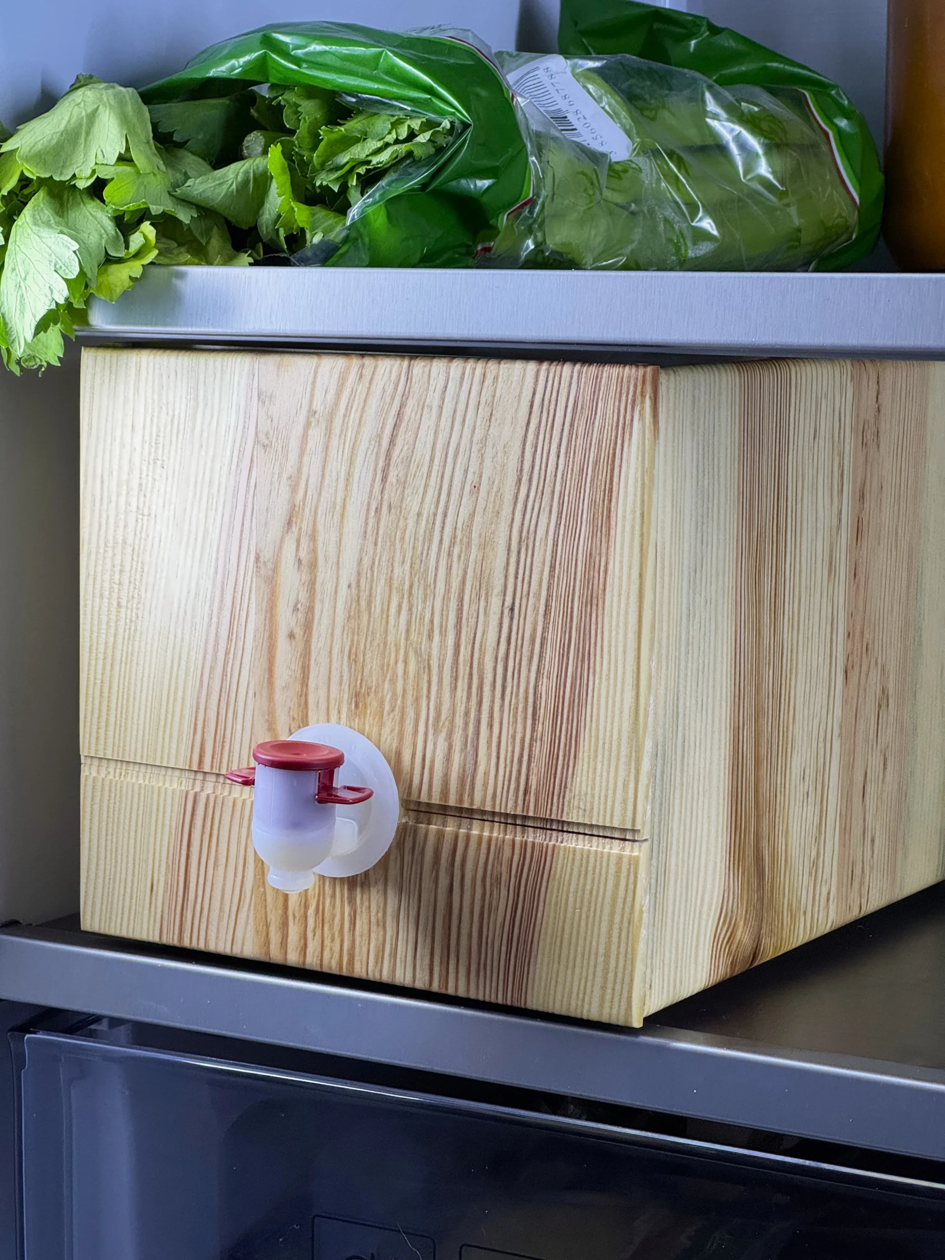The Juibox 5L is a handcrafted wooden box designed to hold standard 5-liter bag-in-box beverages โ from juice and wine to flavored water, kombucha, or even cocktails.