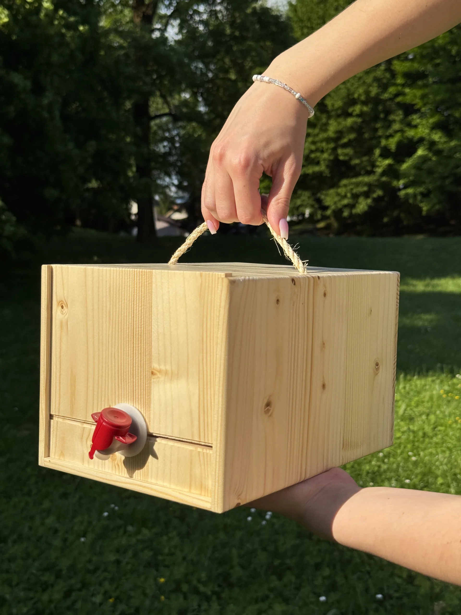Elegant and durable wooden box for 5L bag-in-box beverages โ perfect for juice, wine, or other drinks. Handcrafted from natural spruce wood, Juibox is reusable, eco-friendly, and designed to fit in most fridges. A stylish and sustainable alternative to cardboard โ ideal for home kitchens, garden parties, or holiday rentals.